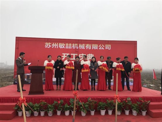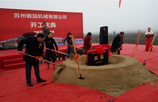 2017年12月29日,我司全資子公司蘇州敏喆機械有限公司新工廠奠基及開工儀式隆重舉行。我司董事長劉迪女士及蘇州吳中開發區領導參加了奠基及開工剪彩儀式。